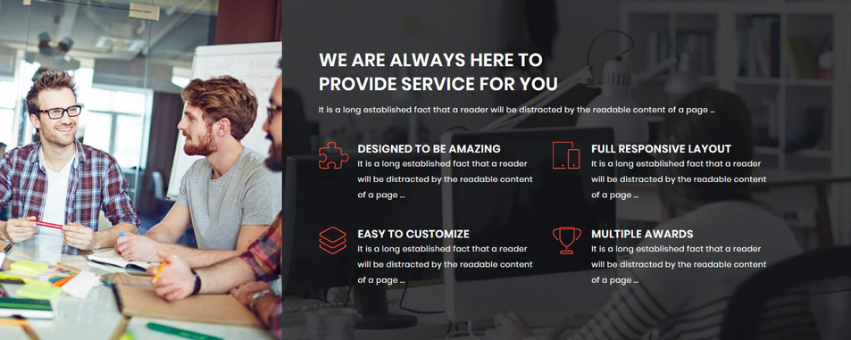 HTML5 & CSS3Fully Responsive- Tested on Multiple DevicesFull Width Layout12 Different ColorsjQuery EnhancedCompatible Browsers- IE9+, Firefox, Safari, Opera, ChromeStep by Step Documentation